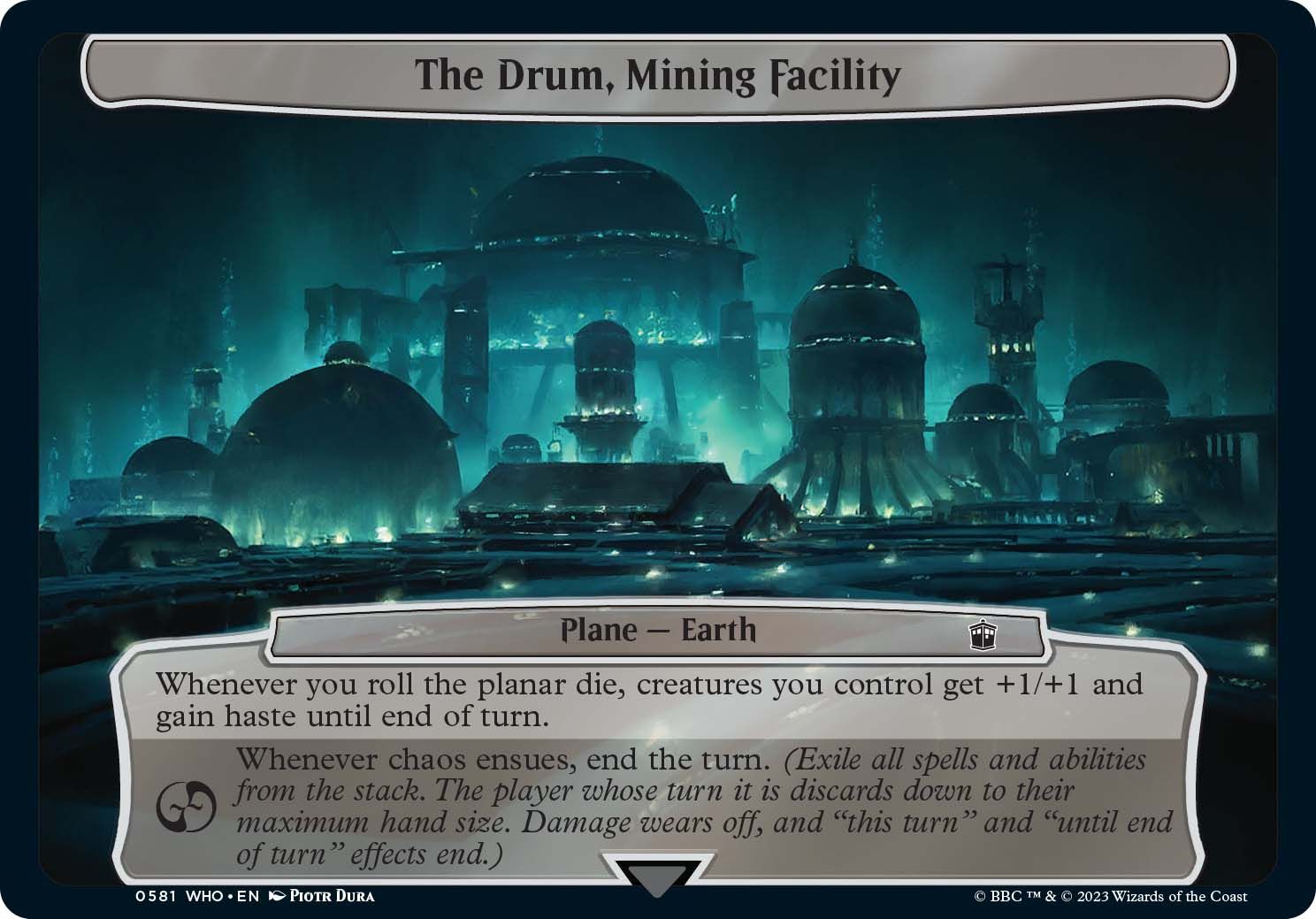 “Para empezar, el tambor aparece en las dos partes del Duodécimo Doctor de Under the Lake y Before the Flood. Es esta instalación minera submarina donde los fantasmas comienzan a aparecer. La tripulación (y nuestros héroes) permanecen en una jaula de Faraday donde los fantasmas no pueden llegar… pero no pueden solucionar el problema desde allí y necesitan salir y explorar. ¡Hacerlo es un gran riesgo! Esta tarjeta refleja eso: puedes enviar a tus criaturas allí para aprender más y obtener recursos. Pero si alguna vez te topas con un fantasma… ¡debes volver corriendo y terminar tu turno!