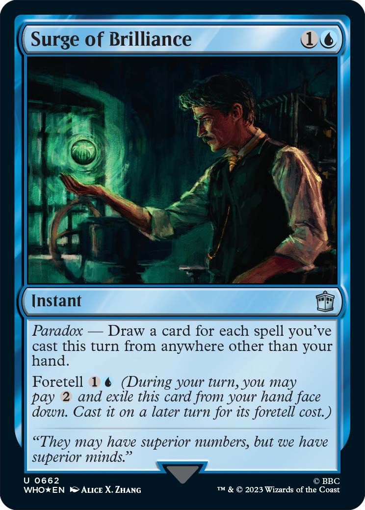 “/> Uno de los aspectos más interesantes de MTG x Médico que son las muchas mecánicas que el conjunto trae a la mesa. Solo con Surge of Brilliance, está Foretell, una Kaldheim mecánica, y también texto de tarjeta que combina bien con una serie de otras mecánicas potenciales, como la cascada. No se trata sólo de que las tarjetas sean adecuadas para los fanáticos de la propiedad, sino que también han sido diseñadas para ser adecuadas dentro del panorama más amplio de Magia: La reuniónlo que significa que hay más oportunidades de probarlos que solo específicamente Médico que persecución de aviones juegos.