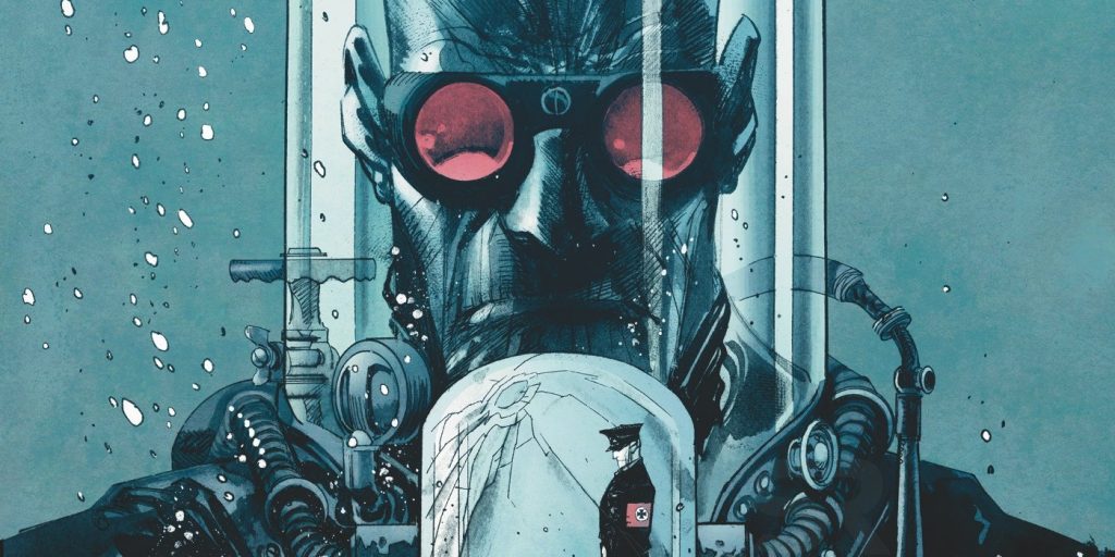 Sean Murphy: Sí, trato de escribir todo para que no necesites volver atrás y leer algunas cosas. Pero sería útil si has leído el primer volumen. En Batman: White Knight creamos la idea de que el padre del Sr. Freeze era nazi, y que sucedió algo en la Segunda Guerra Mundial que involucró a la familia de Nora, que eran judíos. Así que quería ampliar esta historia haciendo un tipo de cosas de Romeo y Julieta, pero en el contexto de la Alemania nazi. No pude encajarlo todo en mi Caballero Blanco, así que le rogué a DC que realmente me dejara tener una oportunidad, dejarme hacer una escena eliminada de alguna manera, lo que refuerza la relación entre el Sr. Freeze y su esposa. Pero como no tuve tiempo de dibujarlo, les rogué que me dejaran usar a Klaus.