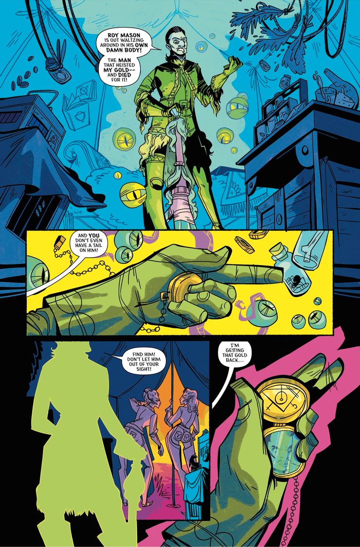 Encadenado a la tumba de IDW combina arte vibrante con terror y elementos occidentales en una mezcla inesperada, como se ve arriba. Roy pudo haber pensado que sus problemas estaban en su punto más alto justo antes de morir, pero parece que apenas están comenzando. El héroe que porta lápidas tiene mucho con lo que lidiar y un enemigo claramente peligroso en su camino. Big Bad es un hechicero carismático y malvado y, a diferencia de Roy, el espejo de bolsillo del villano de esta serie de IDW no es un cronómetro de bolsillo que contiene una foto para recordar a un ser querido; solo busca su propio beneficio. Los fanáticos de los cómics que buscan una nueva versión de los clásicos del oeste pueden leer la historia en su totalidad cuando IDW lanzamientos Encadenado a la tumba: Colección el 7 de diciembre.