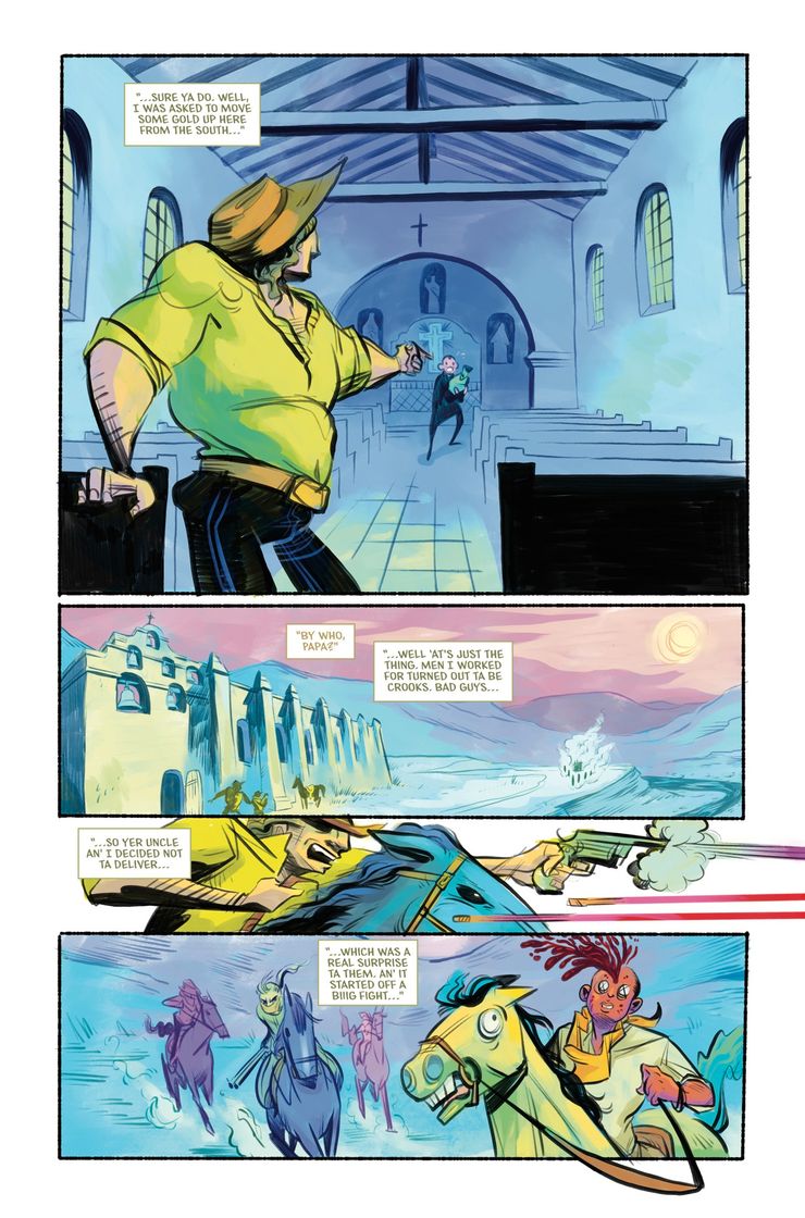 se complace en compartir una mirada exclusiva al proceso creativo detrás de IDW Publishing Encadenado a la tumba. Este cómic occidental sobrenatural se recopilará en un volumen comercial a finales de este año. Combina magia, venganza y el Viejo Oeste con un arte vibrante.