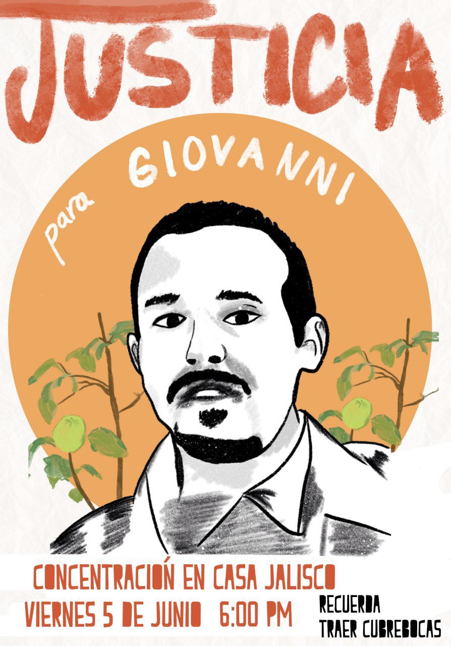A través de redes sociales fue convocada una concentración en Casa Jalisco para exigir justicia por Giovanni López, detenido a inicios del mes pasado por policías de ese estado, presuntamente por no usar cubrebocas, tras lo cual murió al parecer por golpes, en hechos que hasta la fecha se siguen investigando “a fondo”, según el gobernador Enrique Alfaro.