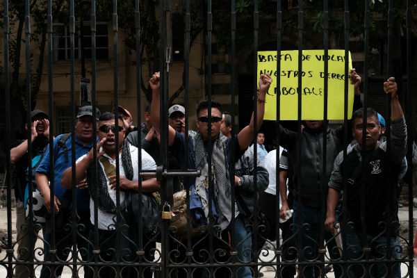 Desde la explanada gritó consignas para ser escuchado por las autoridades y los medios de comunicación que se encontraban en el lugar para cubrir una firma de convenio entre la Segob y el Instituto Electoral de la Ciudad de México (IECM).