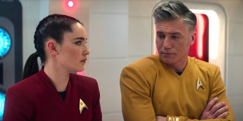 Los orígenes de Star Trek: Nuevos mundos extraños volver hasta el primero viaje a las estrellas piloto, “The Cage”, que fue rechazado por NBC en 1964. “The Cage” presentó al Capitán Christopher Pike (Jeffrey Hunter) y a la tripulación del USS Enterprise, incluido el Número Uno (Majel Barrett) y el Sr. Spock (Leonard Nimoy). . 54 años después, Star Trek: Descubrimiento La temporada 2 reintrodujo al Capitán Pike y su Enterprise. Esta vez, Anson Mount interpretó a Pike, mientras que Rebecca Romijn encarnó al Número Uno y Ethan Peck se puso las puntiagudas orejas vulcanas de Spock. Pike, Spock y Number One fueron tan populares que recibieron su propio spin-off.que se convirtió Star Trek: Nuevos mundos extraños.