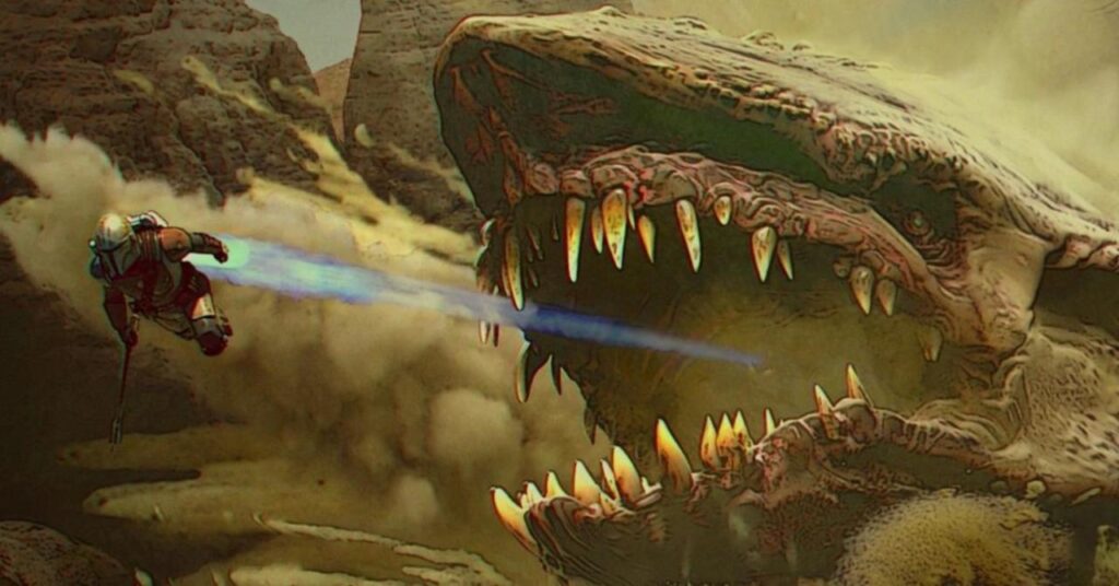El estreno de Star Wars: El mandaloriano, titulado “Capítulo 9: El mariscal”, presentaba a Din Djarin formando equipo con un representante de la ley de Tatooine llamado Cobb Vanth (interpretado por Timothy Olyphant) mientras los dos intentaban cazar y matar a un dragón Krayt. Terminan trabajando con la gente de Mos Pelgo y los Tusken Raiders en una tensa alianza hacia su objetivo compartido, pero el dragón Krayt demuestra ser una amenaza abrumadora. Sin embargo, una vez que despachan la amenaza, los Tusken Raiders comienzan a buscar el cadáver del dragón Krayt con la esperanza de encontrar una perla de dragón Krayt en su cuerpo.