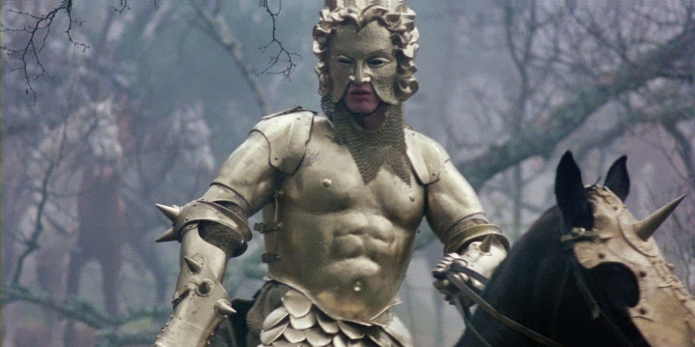 Cuando Merlín sostiene al niño recién nacido en El rey del invierno En el primer episodio, tiene una visión siniestra de un Mordred adulto y encapuchado que lleva una máscara dorada y empuña un hacha. Se le muestra decapitando a personas, con charcos de sangre que fluyen libremente de una pila de cadáveres mientras se escuchan gritos de fondo. Naturalmente, Merlín está bastante perturbado por esto y le dice a Uther que hay “demonio” en el niño que se infectará y crecerá con cada año que pasa.