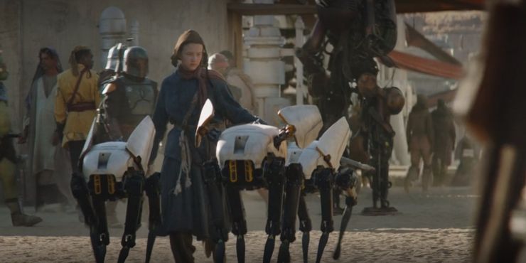 Poco antes de la pelea de Boba Fett y Fennec Shand con la banda de asesinos a sueldo en El libro de Boba Fett En el episodio 1, se podía ver a un pequeño grupo de droides de cuatro patas caminando por la calle mientras eran conducidos por niños. Muchos espectadores los reconocieron como Spot, un robot propiedad y creado por la empresa de robótica Boston Dynamics, quien ha confirmado oficialmente la conexión. [via Twitter]. Diseñado para parecerse a un perro, Spot ha sido objeto de una cantidad incalculable de videos virales encontrados en Internet. En estos videos, se puede ver a estos robots bailando al son de la música, maniobrando a través de pistas de obstáculos, cargando objetos y más.