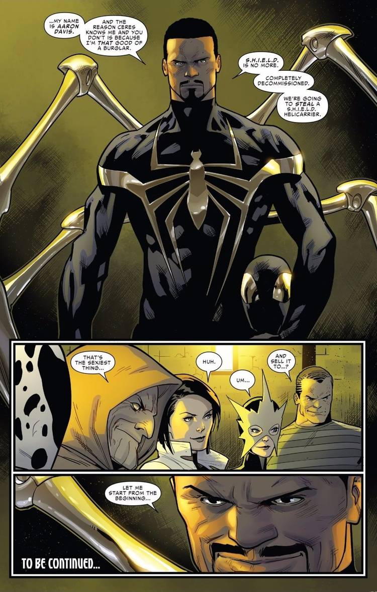 Spider-Man esencialmente abandonó el traje de Iron Spider cuando cambió de bando y pasó la mayor parte del período posterior a… Guerra civil escondido y peleado con Tony, asegurándose de que no pudiera acercarse a Iron Spider incluso si lo intentara. Después de que Tony recuperó el disfraz, Tony vendió la Torre Stark a Qeng Enterprises, perdiendo posteriormente la propiedad del traje.Pero eso no impidió que este diseño inventivo y la idea general de este traje de araña súper versátil se usaran más de un par de veces en la historia de Marvel desde entonces, sobre todo por personas que decididamente no se llamaban Peter Parker.