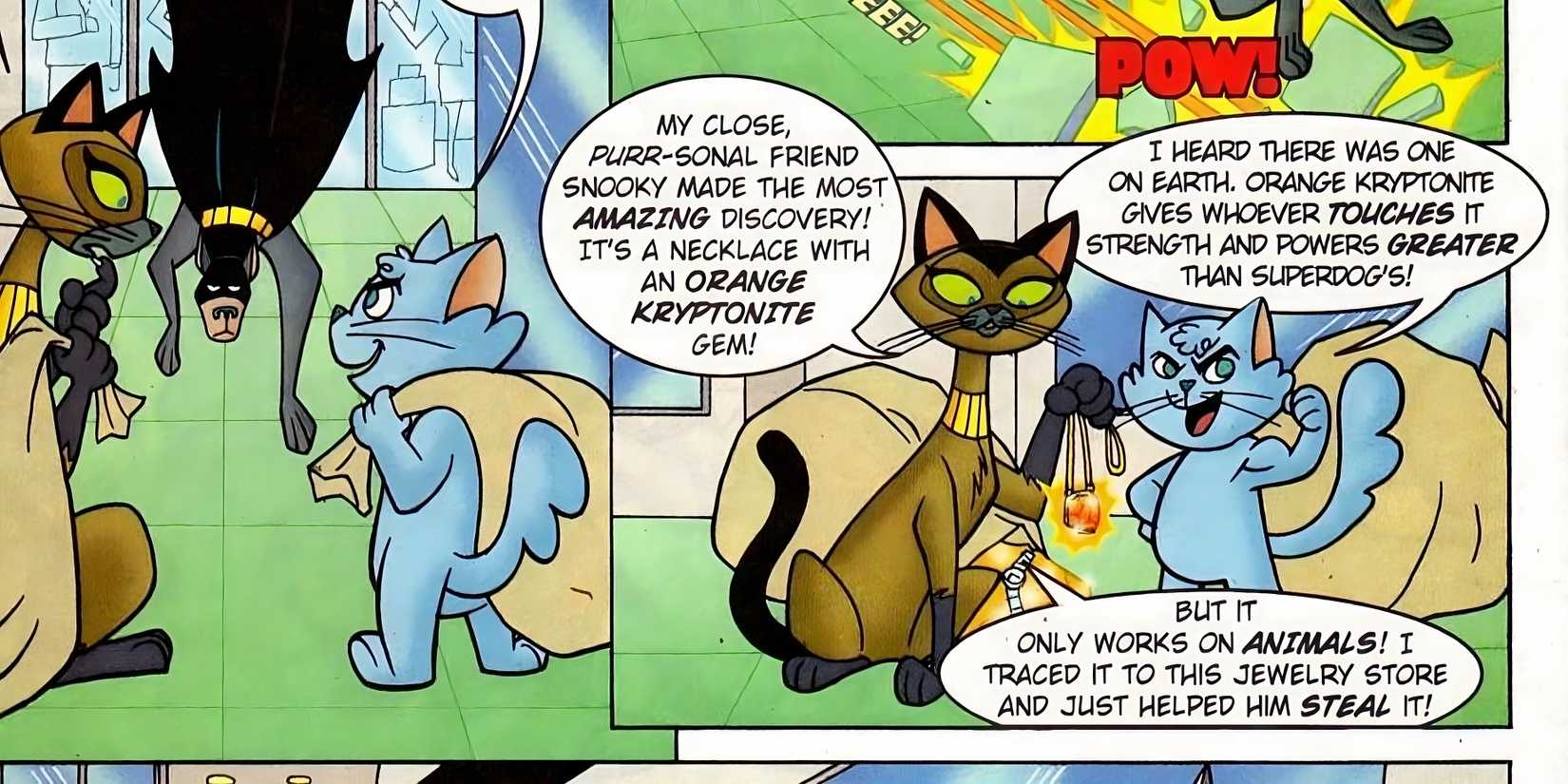 Recientemente se ha visto kriptonita naranja en el Liga DC de Supermascotas y el Krypto el Superperro cómics relacionados. En estos universos, la Kryptonita Naranja es capaz de imbuir a los animales comunes con superpoderes. Si bien los efectos son sólo temporales, se ha utilizado para reforzar a los aliados animales de Krypto. Actualmente se desconoce si todos los animales de la Tierra se ven afectados por el mineral o si también afecta a criaturas extraterrestres. Si bien personas como Lex Luthor han intentado obtener sus propios poderes de esta variante de Kryptonita, Nunca se ha demostrado que altere formas de vida superiores.