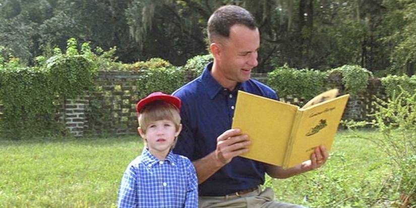 La última escena de Forrest Gump Sigue a Forrest y a su hijo, Forrest Jr., que está con Jenny, mientras esperan el autobús que llevará al niño a la escuela. Cuando el autobús se acerca, Forrest se da cuenta Jorge el curiosoun libro que su madre solía leerle, en la mochila de Forrest Jr. Su hijo explica que lo trae para mostrarlo y contarlo en su clase. Mientras hojea las páginas, La pluma que Forrest había metido previamente en el interior se cae. y en su regazo. Más tarde se va flotando cuando Forrest Jr. se va en su autobús y la película llega a su fin.