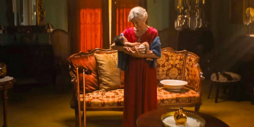 En última instancia, a pesar de algunas ediciones efectivamente engañosas y tomas visualmente cargadas, No parece que Solange sea realmente sobrenatural en La sala del frenteEstos momentos parecen estar más arraigados en la perspectiva de Belinda sobre la vida con Solange, visualizando sus miedos al pintar a Solange como una Virgen María que cuida perfectamente a sus hijos cuando ella tiene dificultades para amamantar. Estos momentos parecen estar arraigados en la cabeza de Belinda, pero Solange refuerza la imagen al intentar repetidamente imponer sus creencias y dogmas a Belinda y su familia. Es casi abrumador, lo que le da un aire antinatural.
