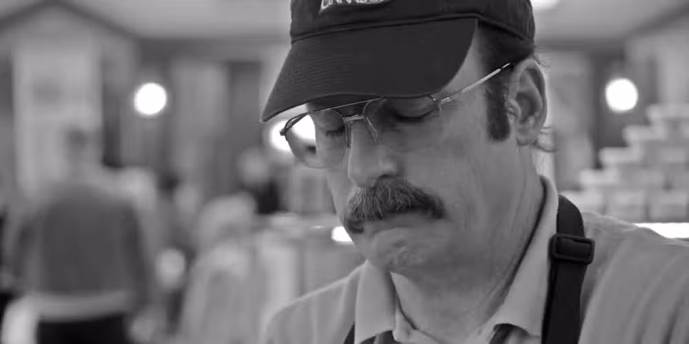 Tal como le dijo a Walt en su final Breaking Bad En la escena, Saul terminó administrando Cinnabon en Omaha, Nebraska. Esta secuencia inicial estableció una tradición que continuó durante el resto de la serie. Cada estreno de temporada posterior tuvo una apertura fría filmada en blanco y negro, poniéndose al día con Saul en su post-Breaking Bad miseria.
