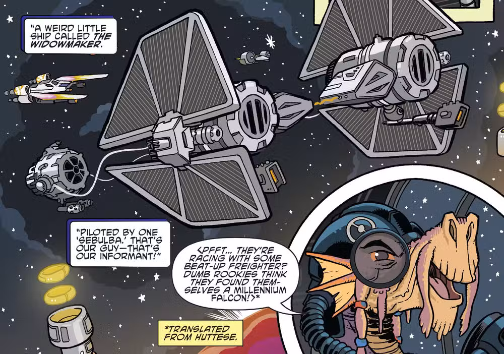 En 2017 Aventuras de Star Wars #23Sebulba piloteó The Widowmaker, una nave que se parecía a su OG Podracer fusionada con un TIE Fighter.. Fue brutal, rápido y perfectamente acorde con la marca del corredor Dug (que también fue informante de Lando Calrissian y Chewbacca durante la Era de la Nueva República).