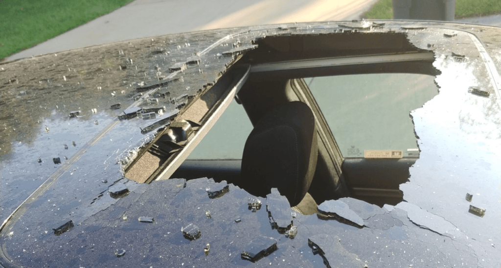 “La consola voló, la central, debe haber estado allí puesta la lata. La voló directamente de sus bisagras y todo salió volando. Y luego atravesó por el techo panorámico y estaba a unos 50 pies de distancia”.