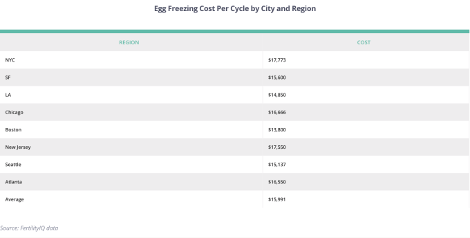 Para referencia, FertilityIQ, una plataforma en línea para investigar a los proveedores y tratamientos de atención de fertilidad, dice que el costo típico por ciclo para la congelación de huevos es de más de $ 17,000 en la ciudad de Nueva York o $ 15,600 en San Francisco. La mayoría de los servicios de congelación de huevos, incluido Extend, no aceptan seguros, ya que la mayoría de los proveedores de seguros no cubren los altos costos de los tratamientos de fertilidad o infertilidad.
