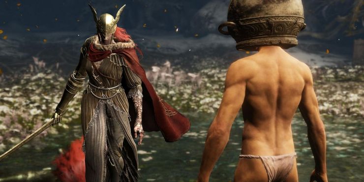 Quizás las criaturas más extrañas de Anillo de Elden son los Living Jars: vasijas de cerámica ambulantes de varios tamaños y miembros de piedra, llenos hasta el borde con cadáveres sellados bajo una tapa de cera. El primer Living Jar que los jugadores pueden encontrar, atrapado en un pozo en el área de Limgrave, es Anillo de EldenEl gregario Iron Fist Alexander, que se enfrenta a diferentes desafíos de los enemigos con la esperanza de convertirse en un verdadero guerrero. Después de unir fuerzas con el jugador para derrotar al jefe Starscourge Radahn y atiborrarse de los cadáveres de los guerreros de un antiguo campo de batalla, se puede encontrar a Iron Fist Alexander bañándose en un lago de lava en Mr. Gelmir, y le regalará al jugador un literal Frasco para usar como casco (este casco de frasco resulta ser el casco característico del legendario asesino de Malenia). Anillo de Elden jugador cooperativo llamado “Let Me Solo Her”.)