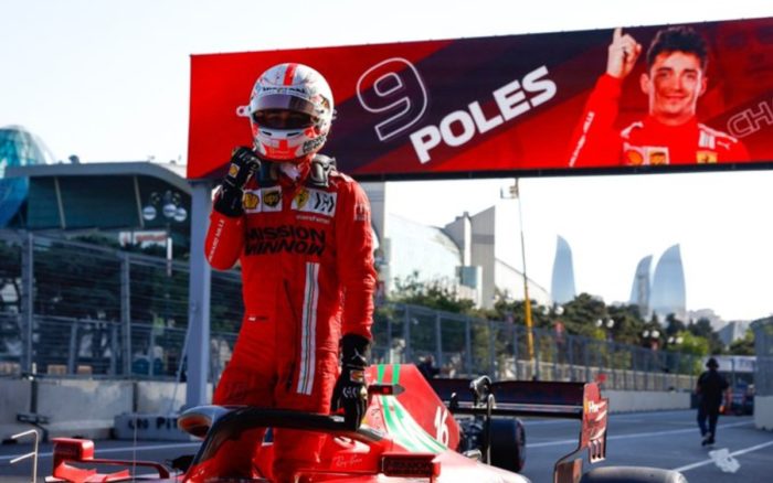 El piloto monegasco Charles Leclerc (Ferrari) firmó este sábado la pole position para el Gran Premio de Azerbaiyán, sexta fecha de la temporada 2021 de la Fórmula 1, tras una accidentada sesión de calificación en el circuito callejero de Bakú, incluidas cuatro banderas rojas; mientras, que el mexicano Sergio Pérez (Red Bull) saldrá en séptimo lugar.