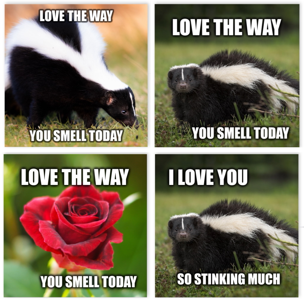 El problema es que el significado de estas publicaciones a menudo resulta de una interacción entre la imagen y el texto. Las palabras que serían perfectamente apropiadas o ambiguas por sí mismas tienen su significado aclarado por la imagen en la que aparecen. No solo eso, sino que hay un sinfín de variaciones en las imágenes o frases que pueden cambiar sutilmente (o no cambiar) el significado resultante. Vea abajo: