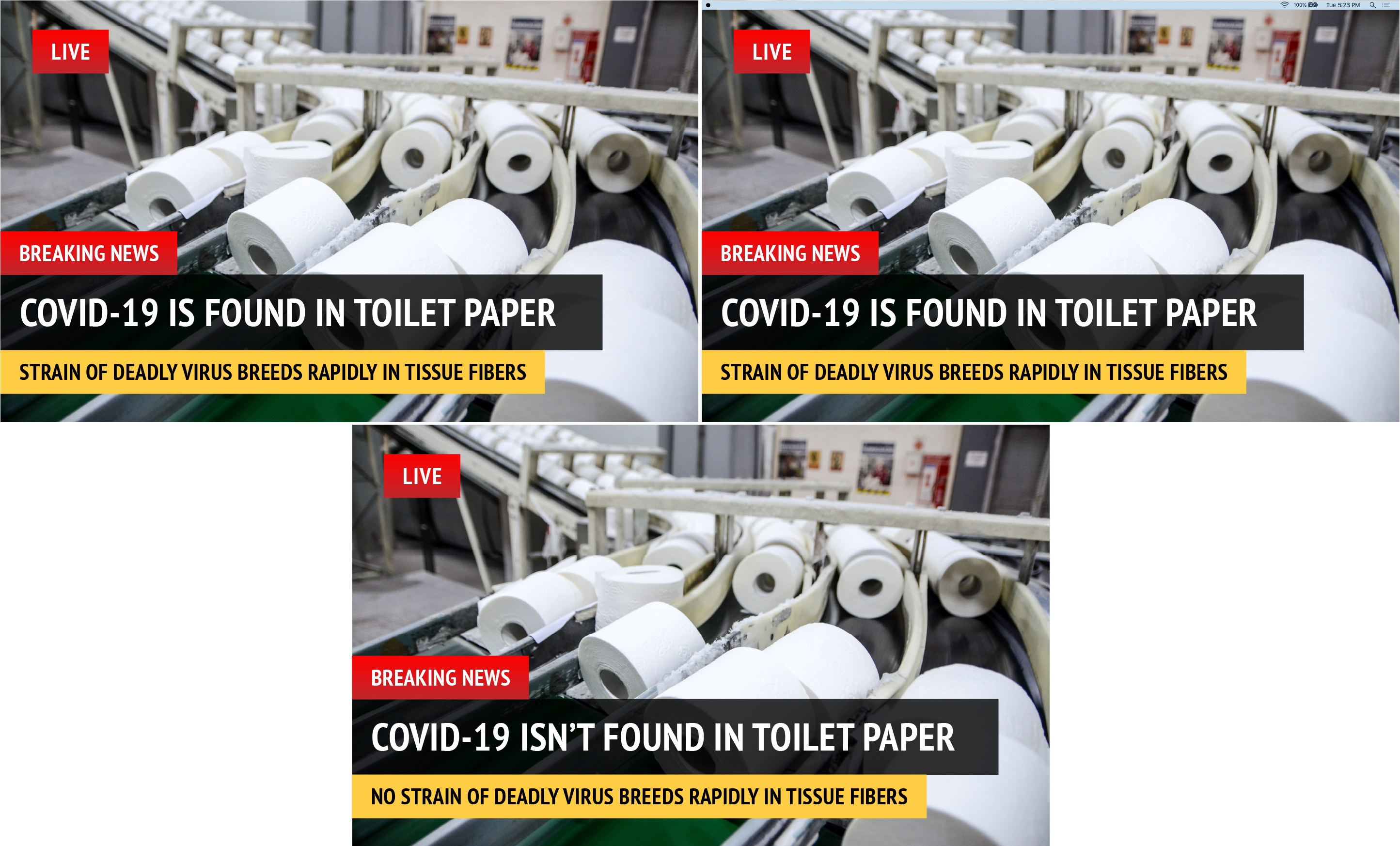 De alguna manera son casi idénticos, con la misma imagen de fondo, colores, tipo de letra, etc. Pero el segundo es ligeramente diferente: es el tipo de cosas que puede ver cuando alguien toma una captura de pantalla y la comparte en lugar del original. El tercero es visualmente el mismo, pero las palabras tienen el significado opuesto.