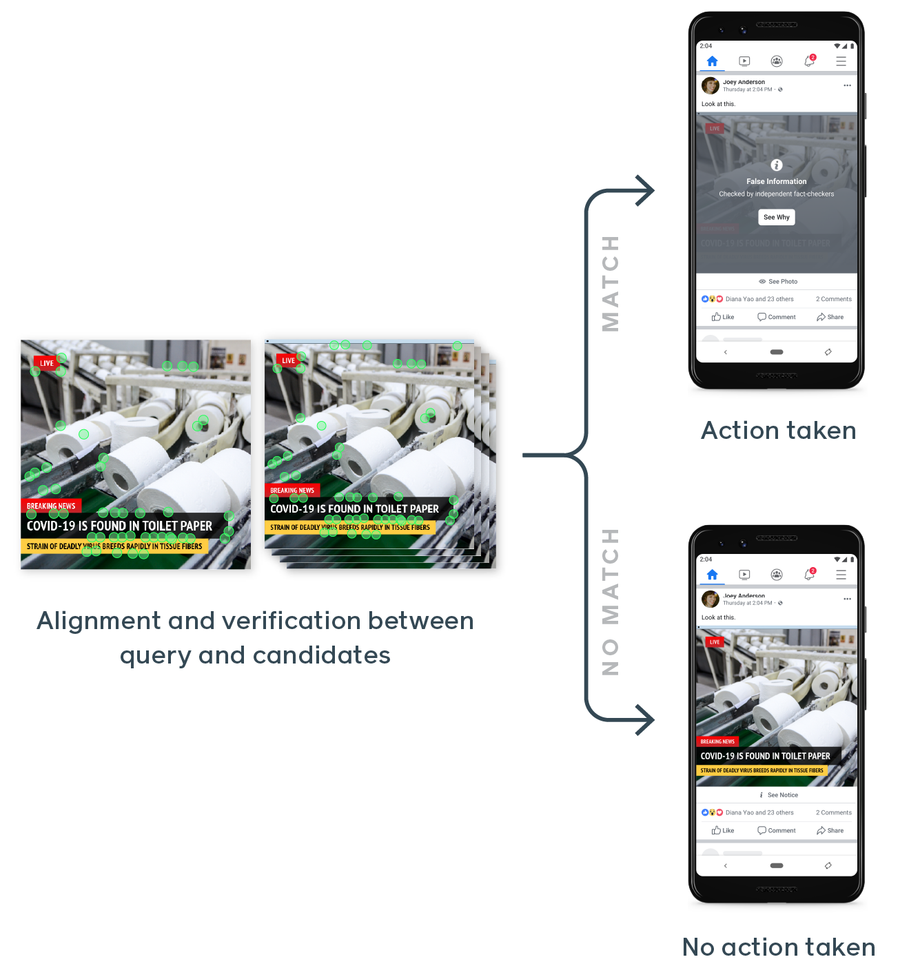 “Lo que queremos poder hacer es detectar esas cosas como idénticas porque, para una persona, son lo mismo”, dijo Schroepfer. “Nuestros sistemas anteriores eran muy precisos, pero eran muy frágiles y frágiles incluso con cambios muy pequeños. Si cambia una pequeña cantidad de píxeles, estábamos demasiado nerviosos de que fuera diferente, por lo que lo marcaríamos como diferente y no lo eliminaríamos. Lo que hicimos aquí durante los últimos dos años y medio es construir un detector de similitud basado en redes neuronales que nos permitió capturar mejor una variedad más amplia de estas variantes nuevamente con una precisión muy alta “.