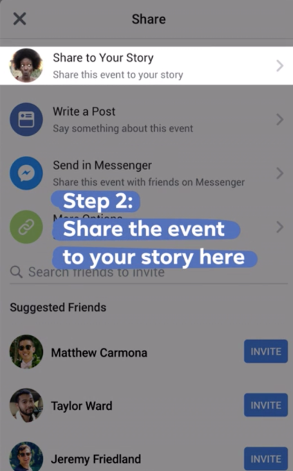 Facebook quiere que sea más fácil para los usuarios compartir eventos y coordinar con amigos antes del inicio del evento. La compañía dijo esta mañana que probará una nueva función que permite a los usuarios compartir los eventos que les interesa asistir a su Historia, y luego hacer planes para reunirse con amigos que también planean asistir.