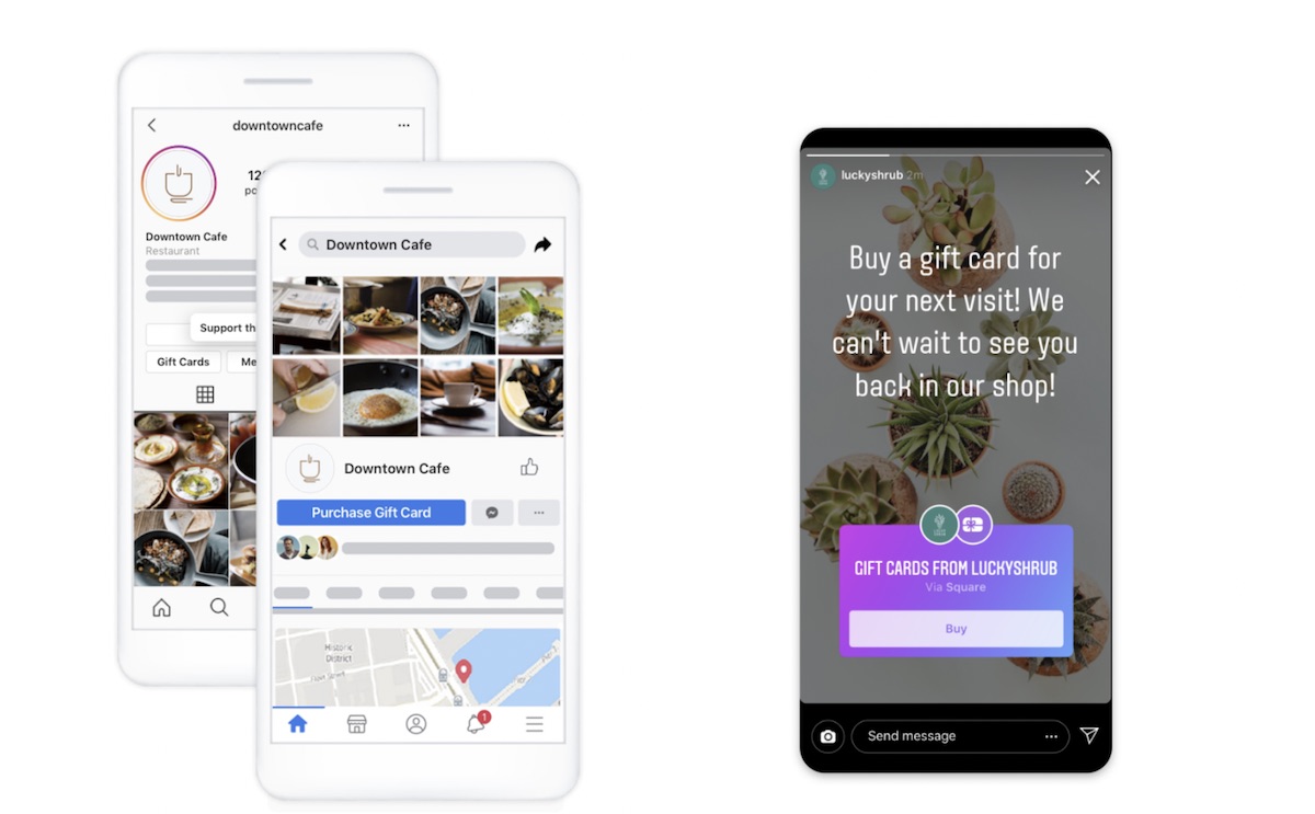 Tarjetas de regalo en Facebook e Instagram