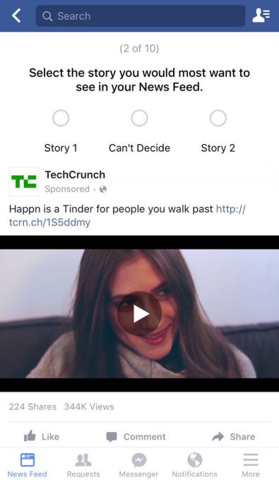 Facebook está actualizando el algoritmo de clasificación de fuentes de noticias para incorporar datos de encuestas acerca de quién dice que son sus amigos más cercanos y qué enlaces le resultan más valiosos. Hoy Facebook anunció que ha capacitado a nuevos clasificadores basados en patrones que vinculan estas encuestas con datos de uso para que pueda predecir mejor qué mostrar en el servicio de noticias. El cambio podría perjudicar a las Páginas que comparten clics y preferencias y que compartan contenido que haga que las personas se sientan satisfechas después.