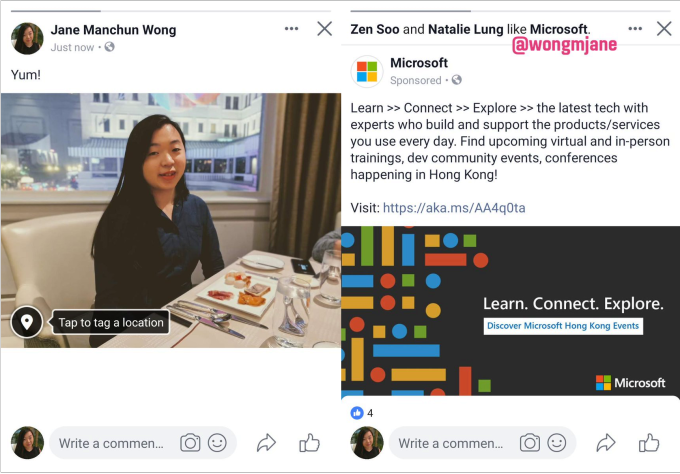 Este carrusel híbrido deslizable fue descubierto por primera vez por un especialista en ingeniería inversa y por el frecuente tipster de TechCrunch Jane manchun wong. Descubrió esta característica inédita dentro de la versión de Android de Facebook y registró el nuevo método de navegación. En este prototipo, cuando se toca el encabezado de una publicación de News Feed o el espacio circundante, los usuarios ven una versión de pantalla completa de la publicación. Desde allí, pueden deslizarse hacia la izquierda para revelar el siguiente contenido en el carrusel híbrido, que puede incluir tanto publicaciones de News Feed tradicionales, anuncios de News Feed, y anuncios de Historias e Historias a propósito verticales.