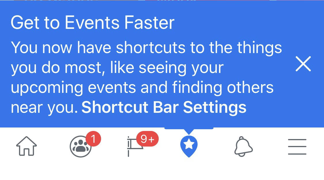 En julio de 2018, Facebook dijo que comenzaría a personalizar la barra de navegación en función de las utilidades que más utiliza. Pero la barra de navegación parecía más decidida a promover las funciones que Facebook quería ser popular, como su competidor Craigslist Marketplace, que rara vez uso, en lugar de su característica de eventos de larga data a la que accedo a diario.