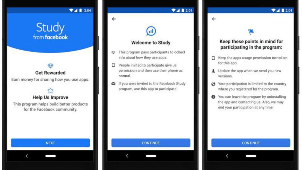 Los primeros países en los que la nueva aplicación de Facebook estará disponible son Estados Unidos e India y los internautas sólo podrán participar en el programa si mientras usan su teléfono les aparece un anuncio de “Study from Facebook” y hacen clic en él.