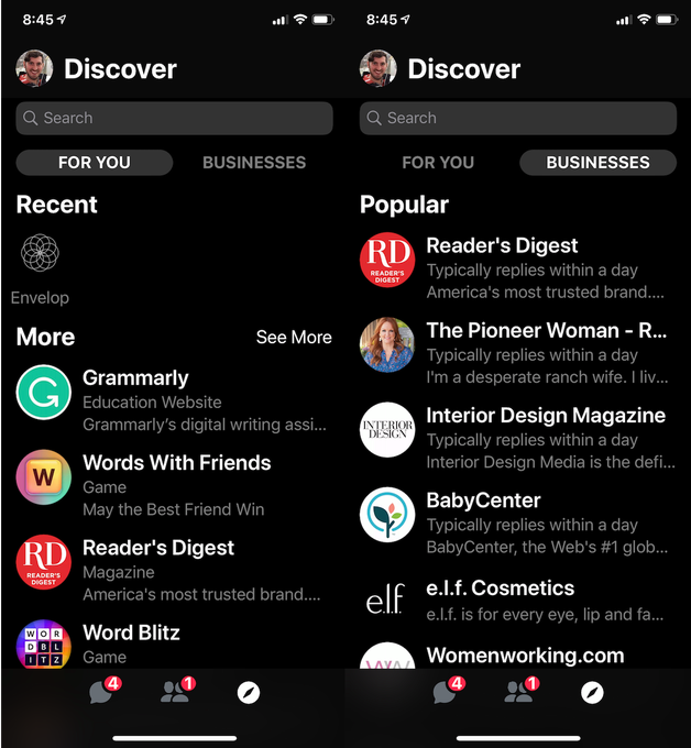 Messenger lanzó Discover en 2017 con la esperanza de que la promoción y visibilidad gratuitas puedan convencer a los desarrolladores de invertir en la construcción de mejores chatbots. Sin embargo, a principios de 2018, incluso Facebook estaba retrocediendo, archivando su plan para construir un asistente personal de inteligencia artificial de servicio completo llamado M que podría pedir hacer cualquier cosa. En cambio, simplemente haría sugerencias de AI de diferentes funciones de Messenger para usar como pegatinas o recordatorios basados ​​en lo que escribiste. Luego anunció el año pasado que sacaría Instant Games de Messenger a la pestaña de juegos dedicada de Facebook.