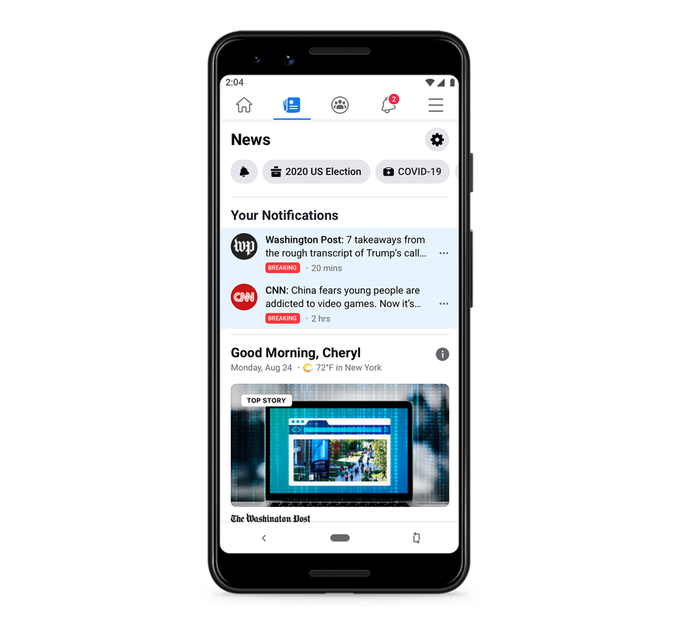 En el lanzamiento, Facebook News tenía más de 200 editores de noticias generales y miles de publicaciones locales y regionales en los EE. UU.
