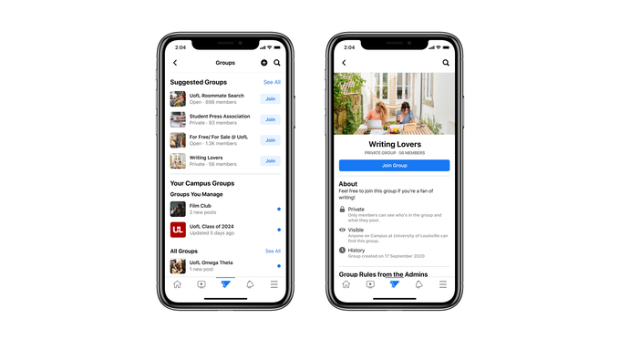La nueva plataforma requiere una dirección de correo electrónico escolar (@ .edu) para unirse y vivirá dentro de una sección dedicada de la aplicación de Facebook. Será accesible desde una pestaña en la parte inferior de la pantalla o desde el menú “Más” junto a secciones como Ver, Citas, Juegos, Noticias, Mercado y otras.