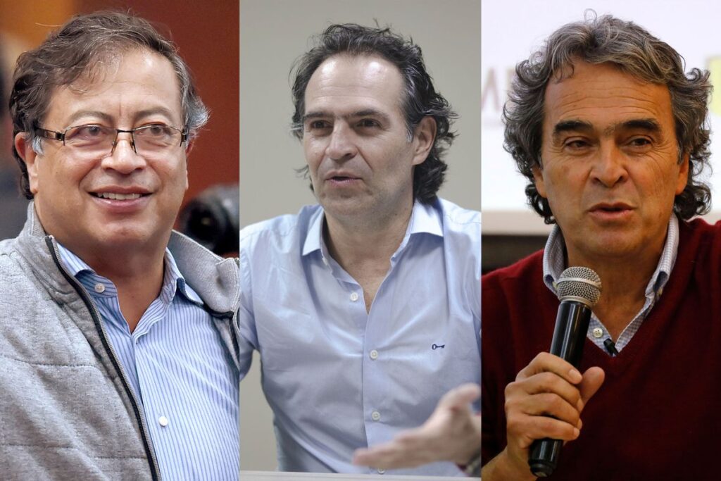 Los tres precandidatos mejor posicionados en las encuestas en Colombia: Gustavo Petro, Federico Gutiérrez y Sergio Fajardo.
