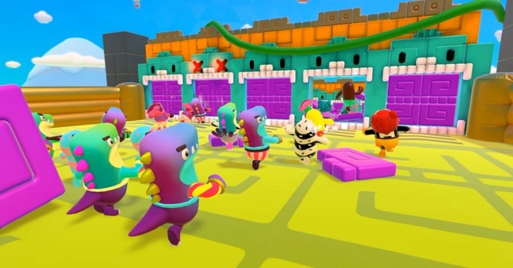 Gran parte de Fall Guys ‘ El encanto cautivador se puede atribuir a su estilo cursi, en el que los pequeños frijoles se topan entre sí y avanzan hacia los objetivos. Desde frutas voladoras hasta personajes que parecen aves rapaces y palomas que atraviesan aberturas estrechas como una avalancha de caramelos, todo el concepto es ridículo hasta el punto de que la mayoría de las veces en las que te sentirías frustrado en cualquier otro juego terminan siendo momentos de risa en Chicos de otoño.