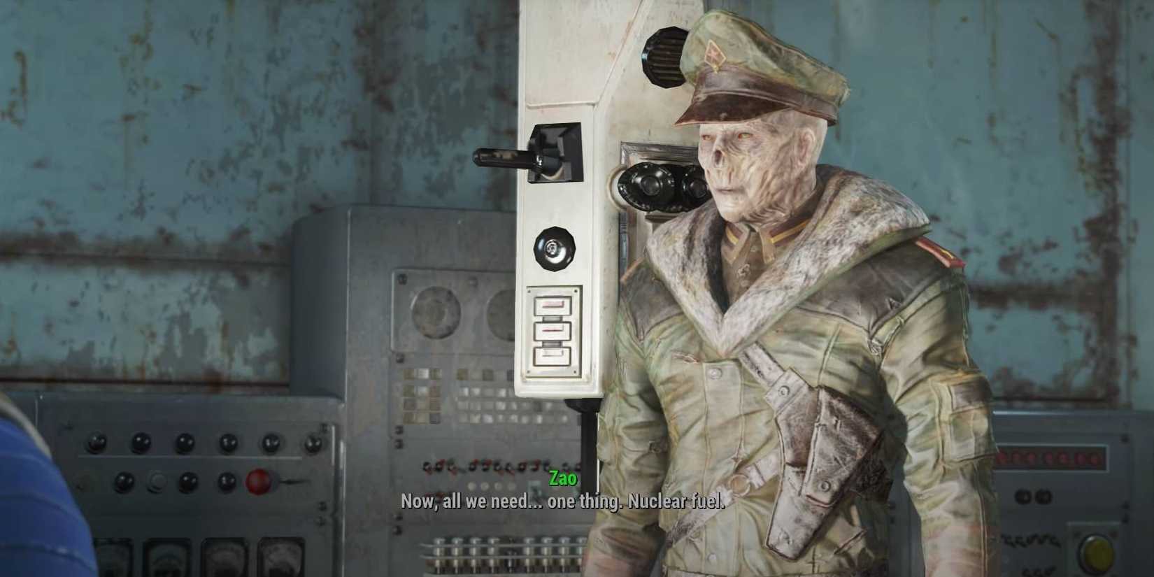 Con un reemplazo para la bobina amortiguadora rota del Yangtze, todo lo que Zao necesita es que usted recuperar combustible nuclear de un misil no disparado en un nivel inferior del barco. Desafortunadamente, el resto de la tripulación de Zao se ha convertido en Feral Ghouls en esta área, lo que los convierte en enemigos mortales con los que debes luchar cuerpo a cuerpo. Equipar una poderosa servoarmadura en consecuencias 4 puede ser una buena estrategia para lidiar con estos enemigos mutados.