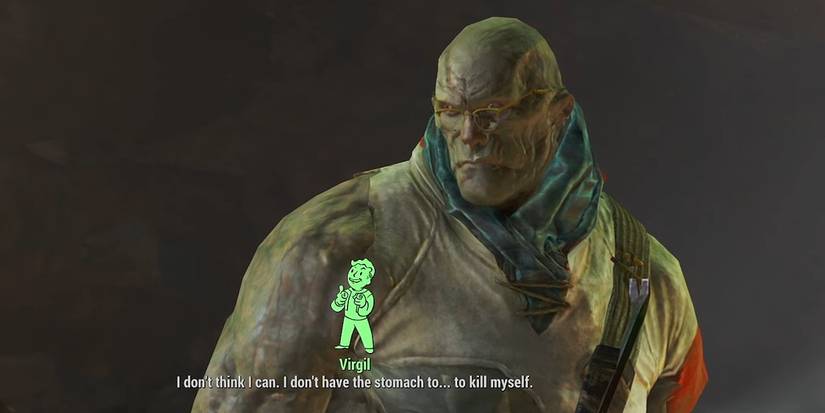 Si el Único Superviviente incumple su palabra de encontrar la cura, Virgil se volverá hostil. Sin embargo, si le mienten, existen dos opciones para afrontar la situación. Virgil expresará que no quiere seguir viviendo como Super Mutantey solicitar que el Único Superviviente lo mate. Sin embargo, también existe la opción de convencer a Virgil de que se suicide, que es una de las decisiones más malvadas de la historia. consecuencias 4 y solo está disponible si se ha visitado Swan’s Pond y se ha conocido la historia de fondo de Edgar Swann.