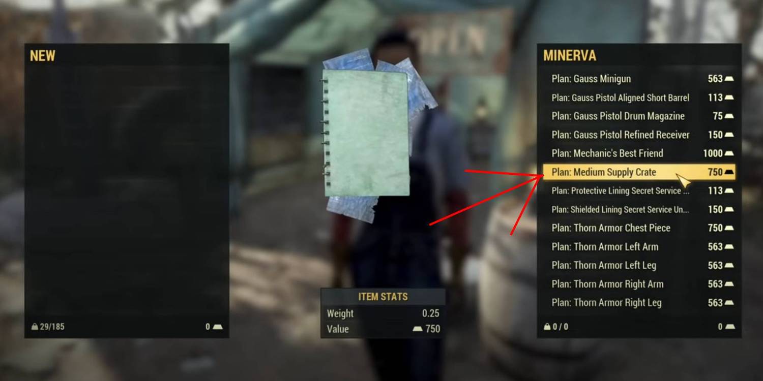 El “Invierno nuclear” El modo ya no existe en Caer 76pero aún puedes conseguir una caja de suministros mediana comprar los planos del artículo en la tienda Big Sale de Minerva que aparece con poca frecuencia. Una vez por semana, el personaje Minerva ofrecerá sus productos a la venta en diferentes lugares del páramo. Ocasionalmente, los planos de la Caja Mediana aparecerán en su inventario para que puedas comprarlos si tienes suficiente dinero.