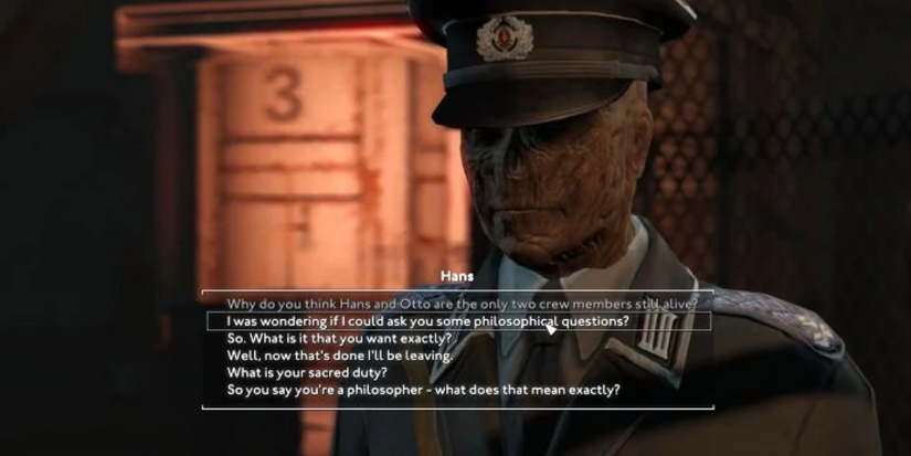 Justo cuando regreses al submarino, Hans te quitará el modelo de lenguaje y lo instalará, por lo que en poco tiempo tendrás a Kant hablando inglés. Desafortunadamente, Esto también hará que Kant impida que todas las personas en el barco salgan, Incluyéndote a ti. Para escapar, deberías hablar con Kant.