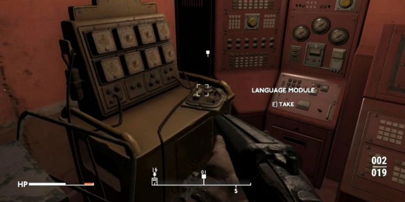 Sube por el ascensor y luego hacia las consolas del piso superior. En el camino, tendrás que estar atento a algunas torretas láser y al menos a un Protectron. Antes de llegar a la consola que contiene el módulo de idioma, toma el módulo de idioma de la consola y regresa al U-96 para instalarlo.