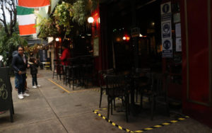 La música sube y baja de volumen. Al menos una docena de jóvenes sentados en diferentes mesas están fumando en la falsa terraza del bar La Chelestial, mientras los meseros les atienden, sin prohibirles nada; pero no son los únicos, a lo largo de otros establecimientos del corredor de Génova pasa lo mismo; sin embargo, no se ve a ningún inspector vigilando la zona, ni advertencias sobre posibles peligros de contagio.