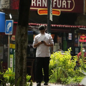 Las mesas instaladas junto a las aceras del restaurante Carbonvino están correctamente separadas como lo establece la sana distancia. Los meseros atienden con tapabocas y caretas. En una mesa está Erika con sus amigas, y es la primera vez que sale a cenar bajo las reglas de la “nueva normalidad”. Cuando iba a encender su cigarro el mesero le pidió que lo hiciera más alejada.