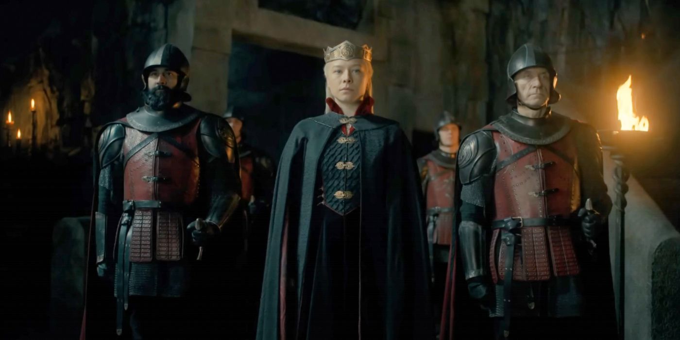 No es demasiado difícil imaginar a Rhaenyra vistiendo una armadura y llevando una espada propia en Casa del Dragón temporada 2. Alicent y Aemond no le dejaron otra opción después de que Lucerys fuera asesinada mientras actuaba como un mero mensajero. Rhaenyra termina la temporada 1 luciendo francamente asesina. Con Daemon a su lado para obligarla a lanzar una invasión a gran escala, lo más probable es que Rhaenyra esté dispuesta a cometer atrocidades.