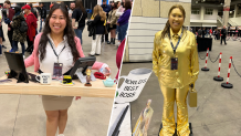 Esto le valió a Nguyen el premio Fundie de cosplay adulto del sábado. El domingo se disfrazó de Dundie Award.
