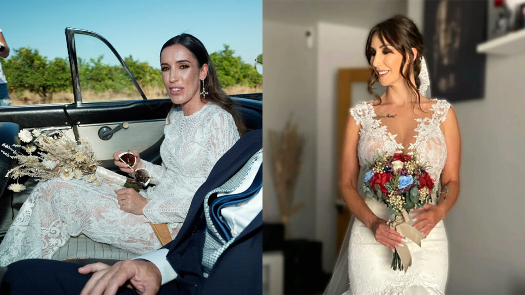 La ya nuera del entrenador del Real Madrid ha lucido un vestido de guipur de manga larga que creaba un efecto de transparencias muy femenino y elegante. El estilismo, además, contaba con un corte de sirena con cola que ha realzado la silueta de la novia y dos aberturas en los laterales de la cintura. Sin embargo, lo que más ha llamado la atención no ha sido el ramo de flores preservadas, sino los pendientes en forma de cruz y las gafas de sol con montura blanca que han conseguido dar un toque de lo más rompedor al look.