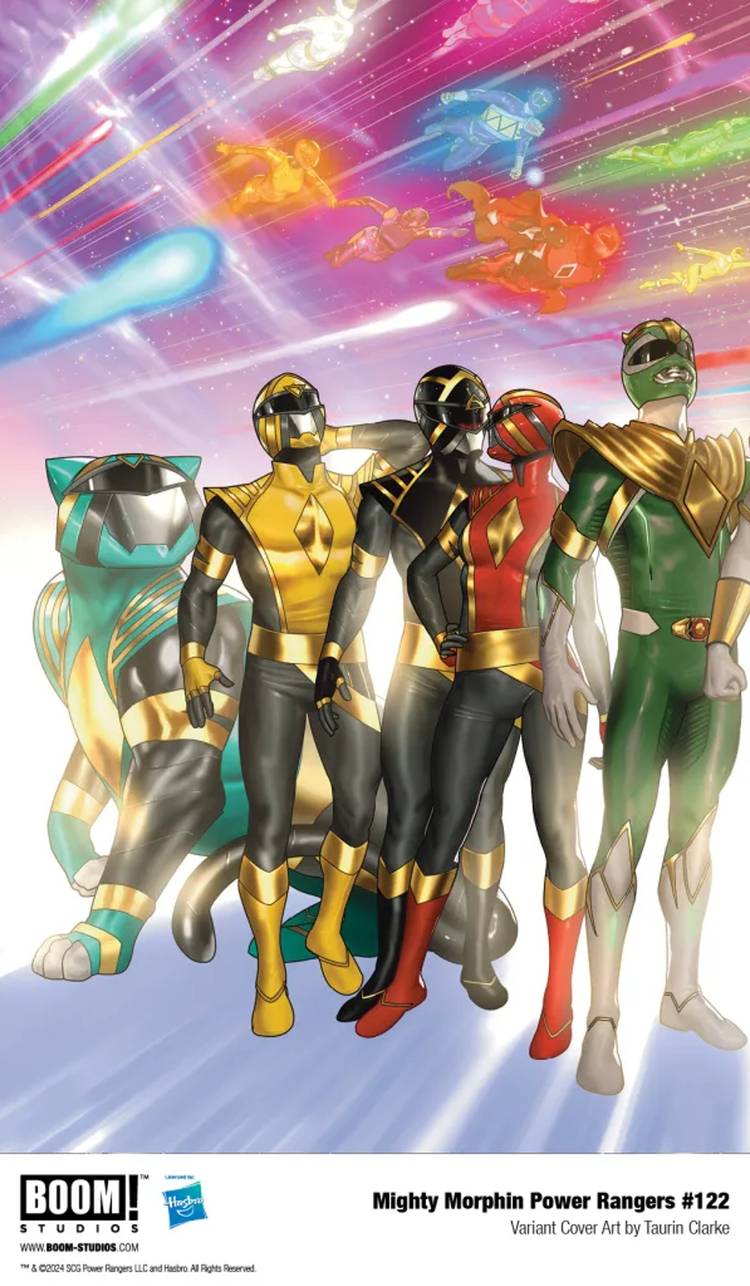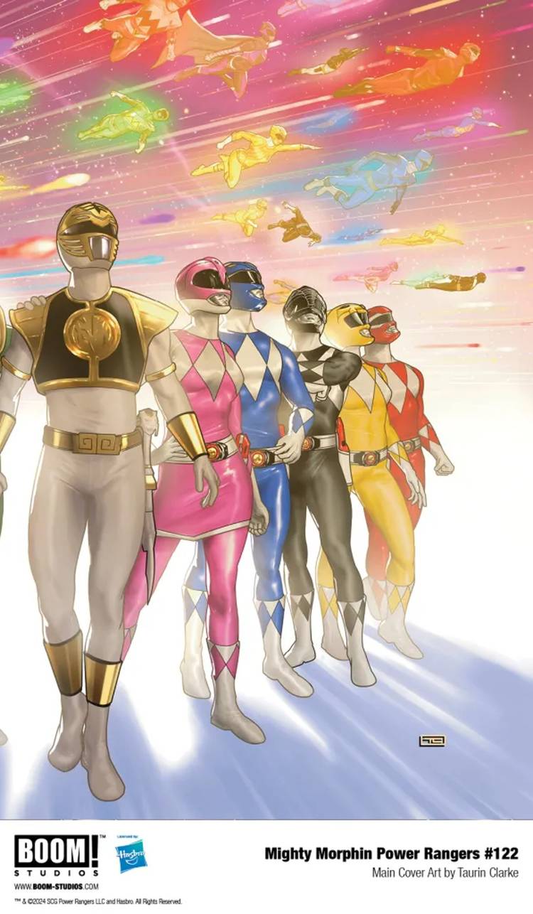Sin embargo, primero, ¡BOOM! Studios ha presentado cuatro portadas variantes de edición limitada para Mighty Morphin Power Rangers #122, todos ellos escritos por Goñi Montes, que se ve directamente debajo. Cada una de las portadas de arte de Montes estará disponible para que los asistentes las compren en la Comic-Con de San Diego de este año.. El número 122 de MMPR servirá como el número final de la serie principal, antes de la Mighty Morphin Power Rangers: La hora más oscura El one-shot número 1 marca el número final de la franquicia de cómics.
