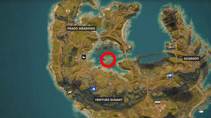 Afortunadamente, Dani recuerda el área general en la que vio el nombre “Guau Guau”. Recordó haberlo visto alrededor de Isla Santuaria, que se puede ver en el mapa del juego. Los jugadores pueden abrir el mapa, ir a Isla Santuaria y buscar una pequeña isla justo en el medio del cuerpo de agua dentro de la masa terrestre más grande. Esa pequeña isla es Guau Guau.