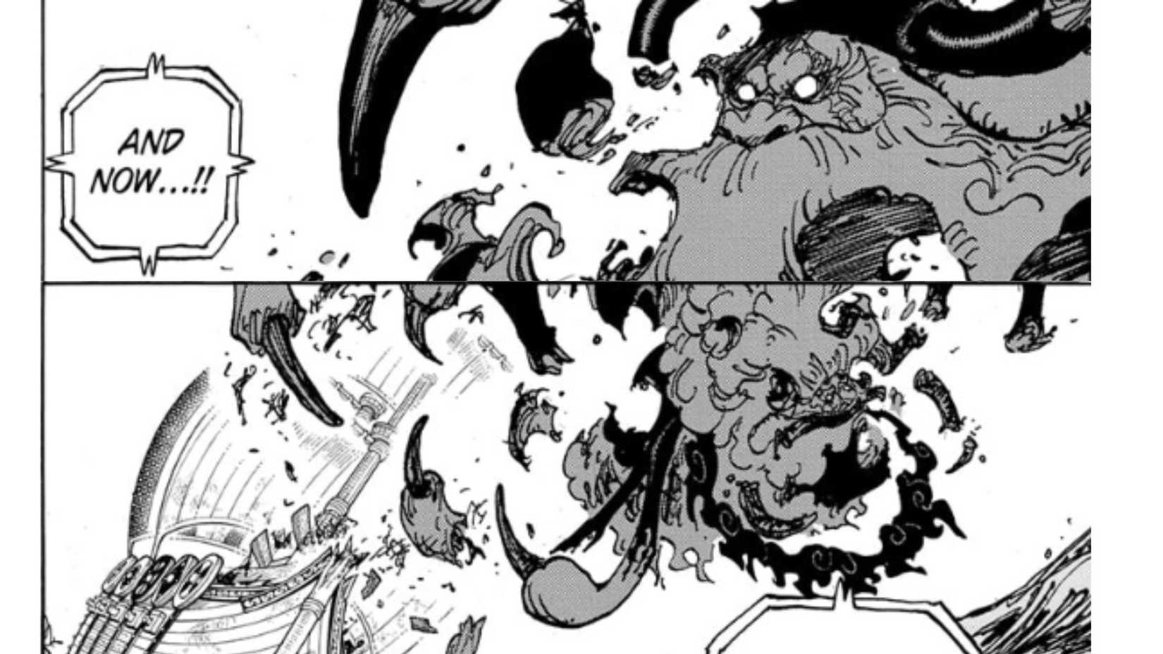 La combinación de los ataques destruye a Saturn en pedazos, enviándolo fuera del barco, mientras que los Sombrero de Paja restantes llegan rápidamente al mar con su Thousand Sunny volador. Al concluir el capítulo, el mensaje de Vegapunk enfatiza la importancia de comprender la historia del mundo a través del descubrimiento del One Piece. Declara que el destino del mundo depende de quien reclame el tesoro, ya que personajes importantes de la serie, que incluyen a los cuatro emperadores de los mares como los principales contendientes, junto con indicios de nuevos retadores, son mencionados como participantes en esta carrera definitiva.