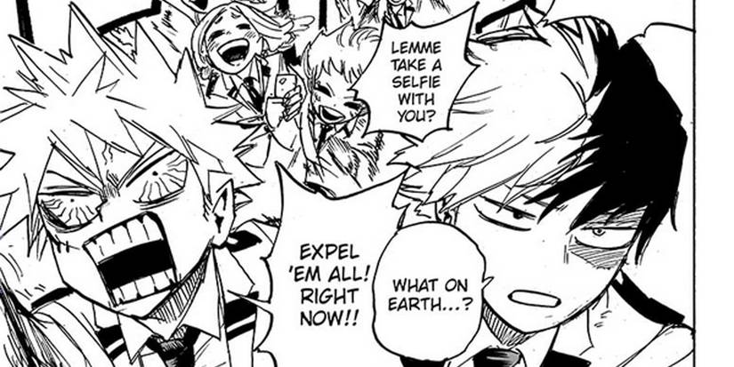 El capítulo 427 terminó con un panel cómico que mostraba a Bakugo y Todoroki lidiando con una multitud de admiradores de los estudiantes entrantes de la UA. Ahora que la Clase 1-A finalmente ha sido promovida a la Clase 2-A, parece que es hora de conocer a la nueva generación de estudiantes de primer año que ingresan a la UA por primera vez. También es el momento de evaluar qué tan lejos han llegado los jóvenes héroes en el último año. Estos estudiantes que llegaron sin saber prácticamente nada son héroes veteranos de pleno derecho en este momento, incluso si todavía tienen 2 años más de escuela secundaria que necesitan para terminar primero. Ha sido un largo viaje, pero los resultados son innegables.