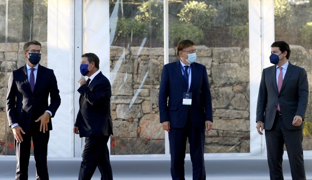 El debate entre presidentes autonómicos del PP y del PSOE en la tercera edición del Foro La Toja Vínculo Atlántico corroboró que mantienen muchas posiciones comunes, sobre la validez y éxito del Estado autonómico durante las peores fases de la pandemia y su reclamación genérica de una reforma del sistema de financiación vigente. Los presidentes de Galicia y Castilla-León, los populares Alberto Núñez Feijóo y Alfonso Fernández Mañueco, y los de la Comunidad Valenciana y Castilla-La Mancha, los socialistas Ximo Puig y Emiliano García-Page, también coincidieron en pedir que se les escuche más desde el Gobierno central, en concreto desde el Ministerio de Hacienda, tanto para negociar el reparto de los dineros estatales como de los fondos europeos para el plan de recuperación. Los matices y las diferencias se plasmaron entre la España mediterránea y la interior y también menos poblada.